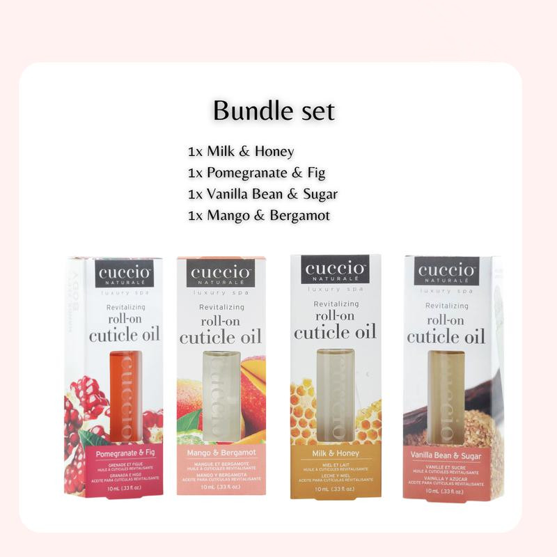 Cuticle Oil Bundle promo ! Get our best 10ml selling cuticle oils in a bundle! This bundle include 4 Roll On Cuticle Oil. Product is made in USA.